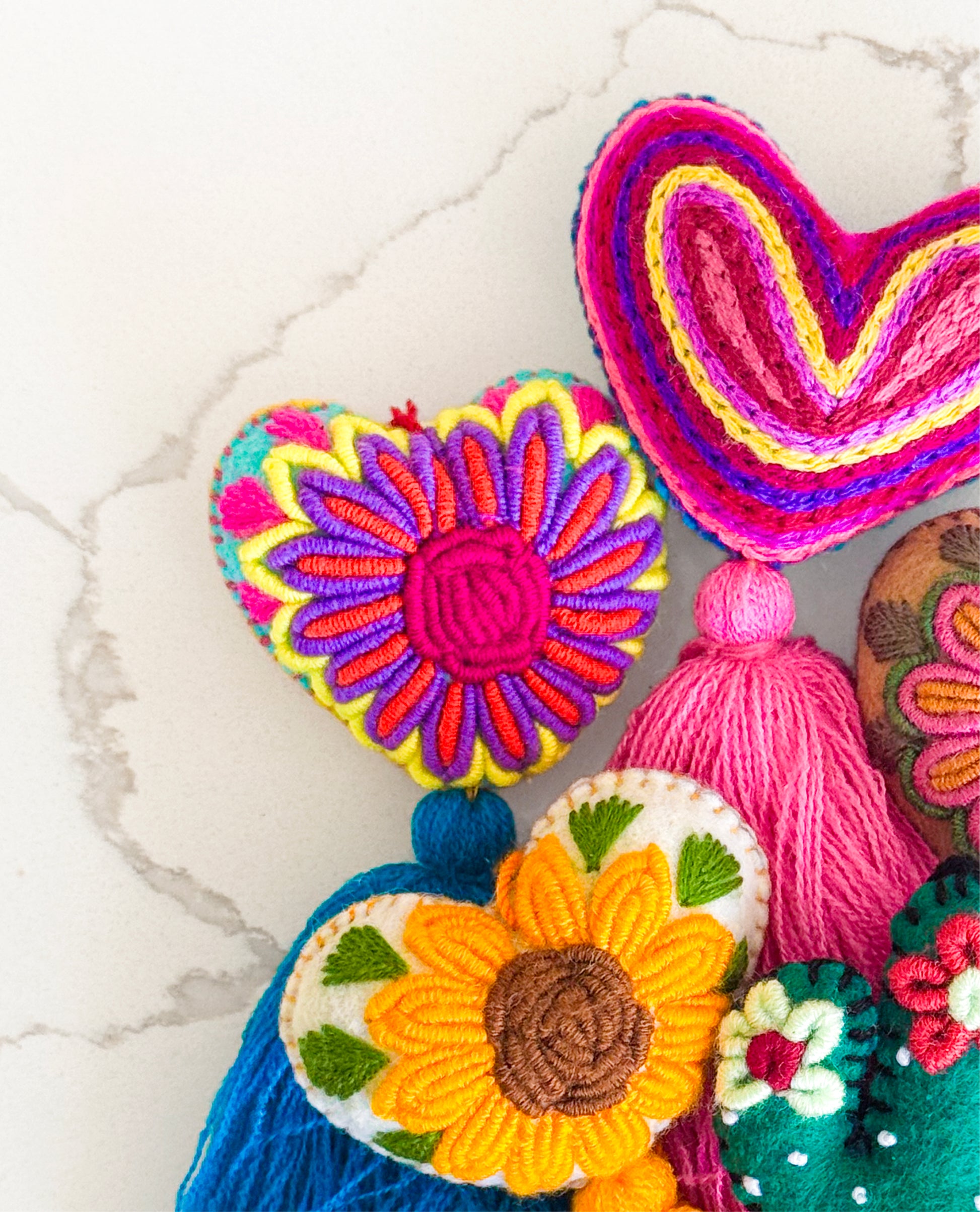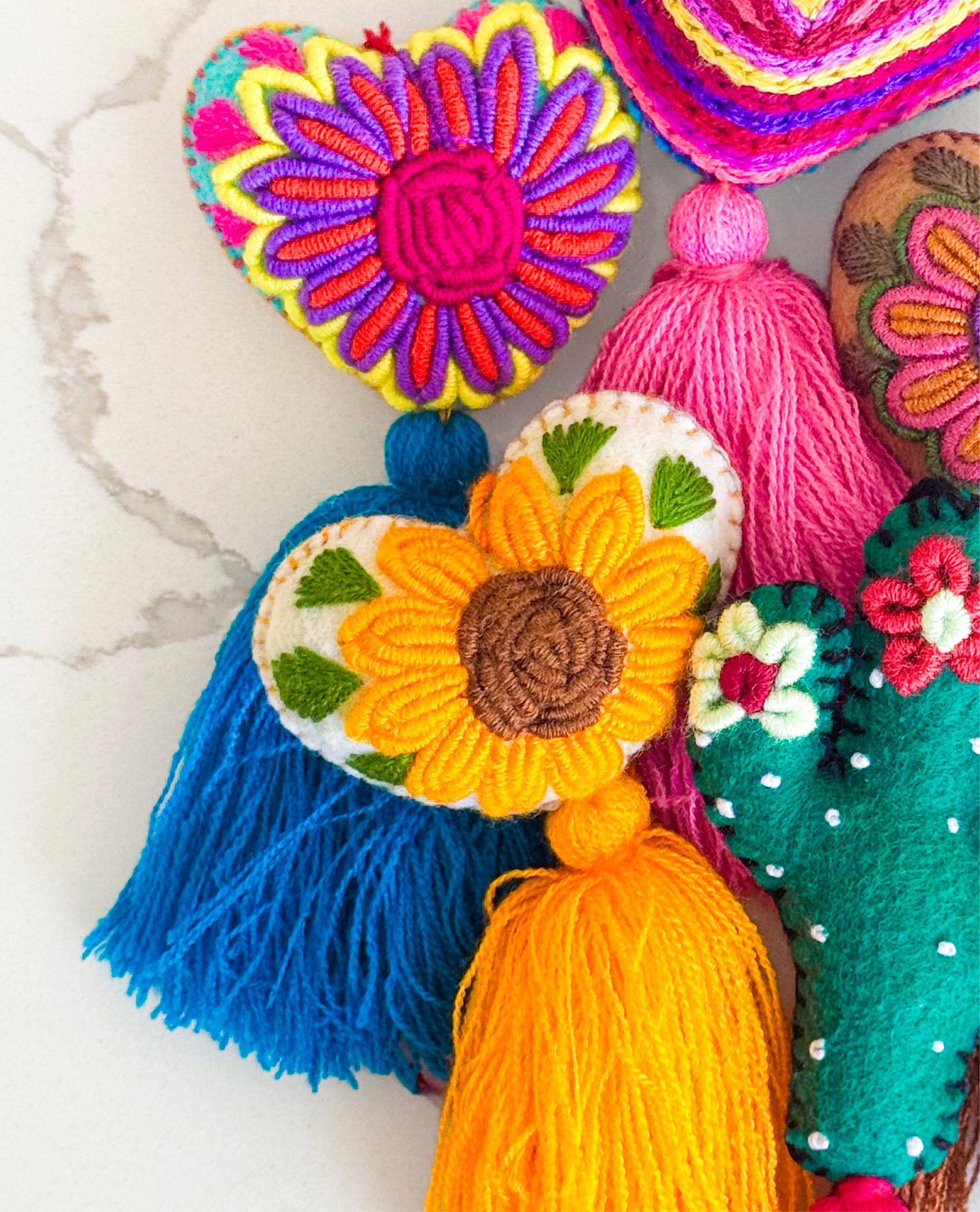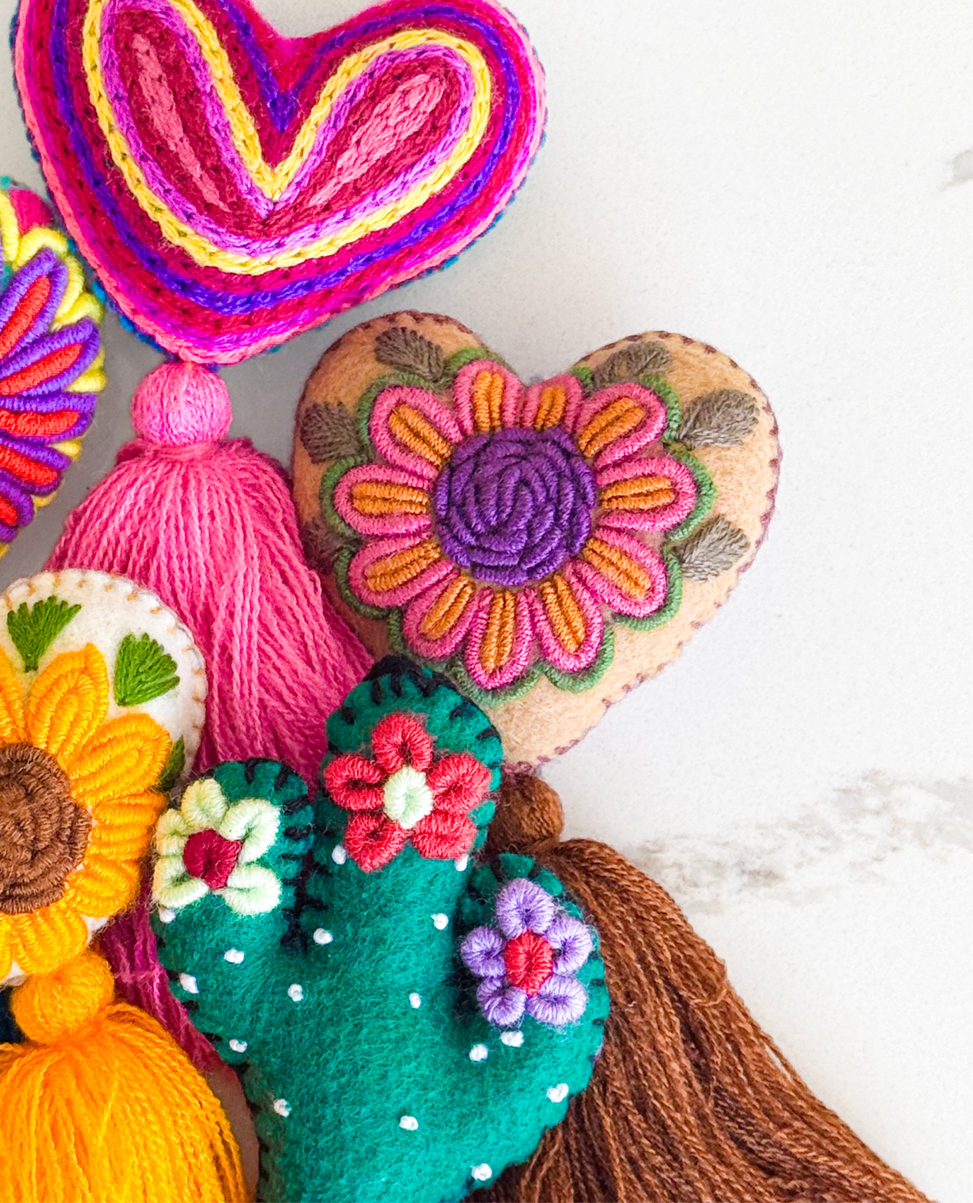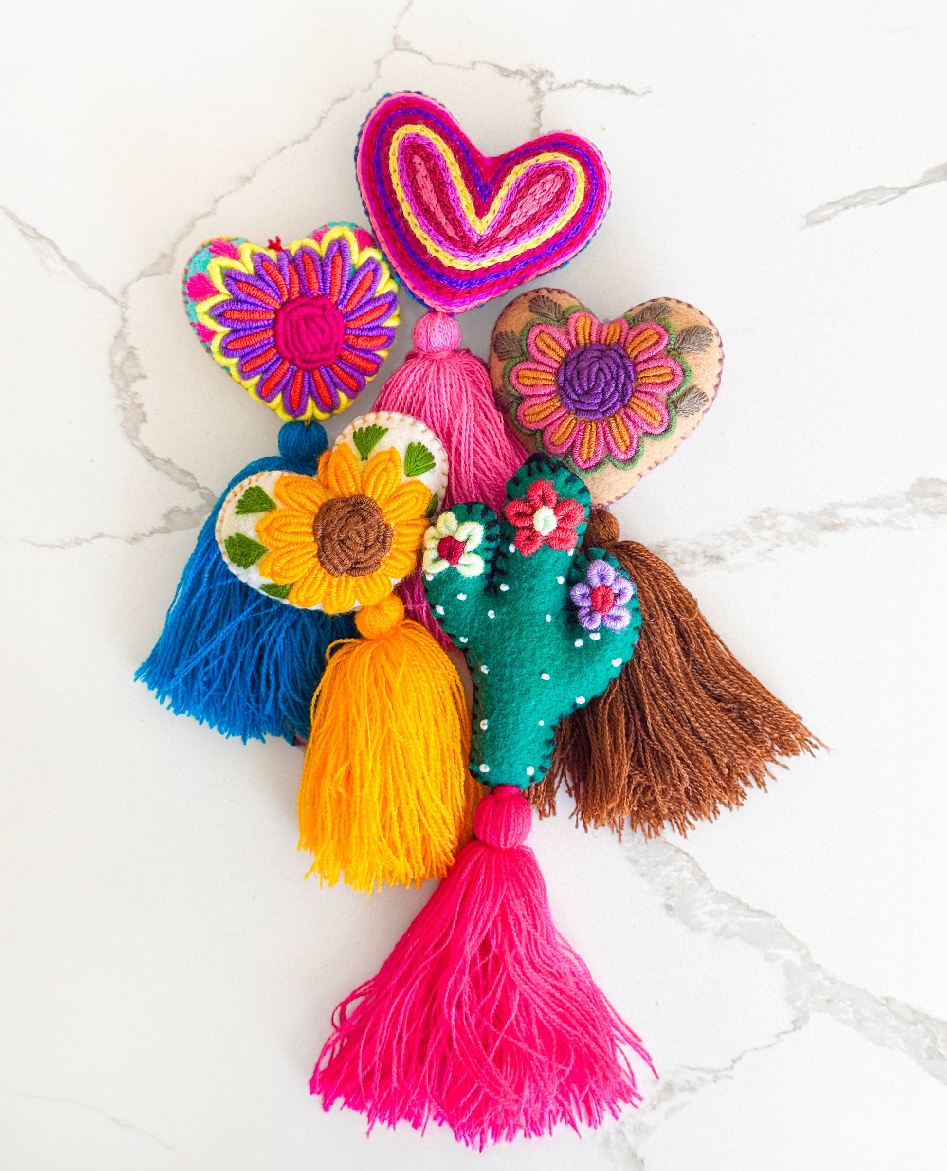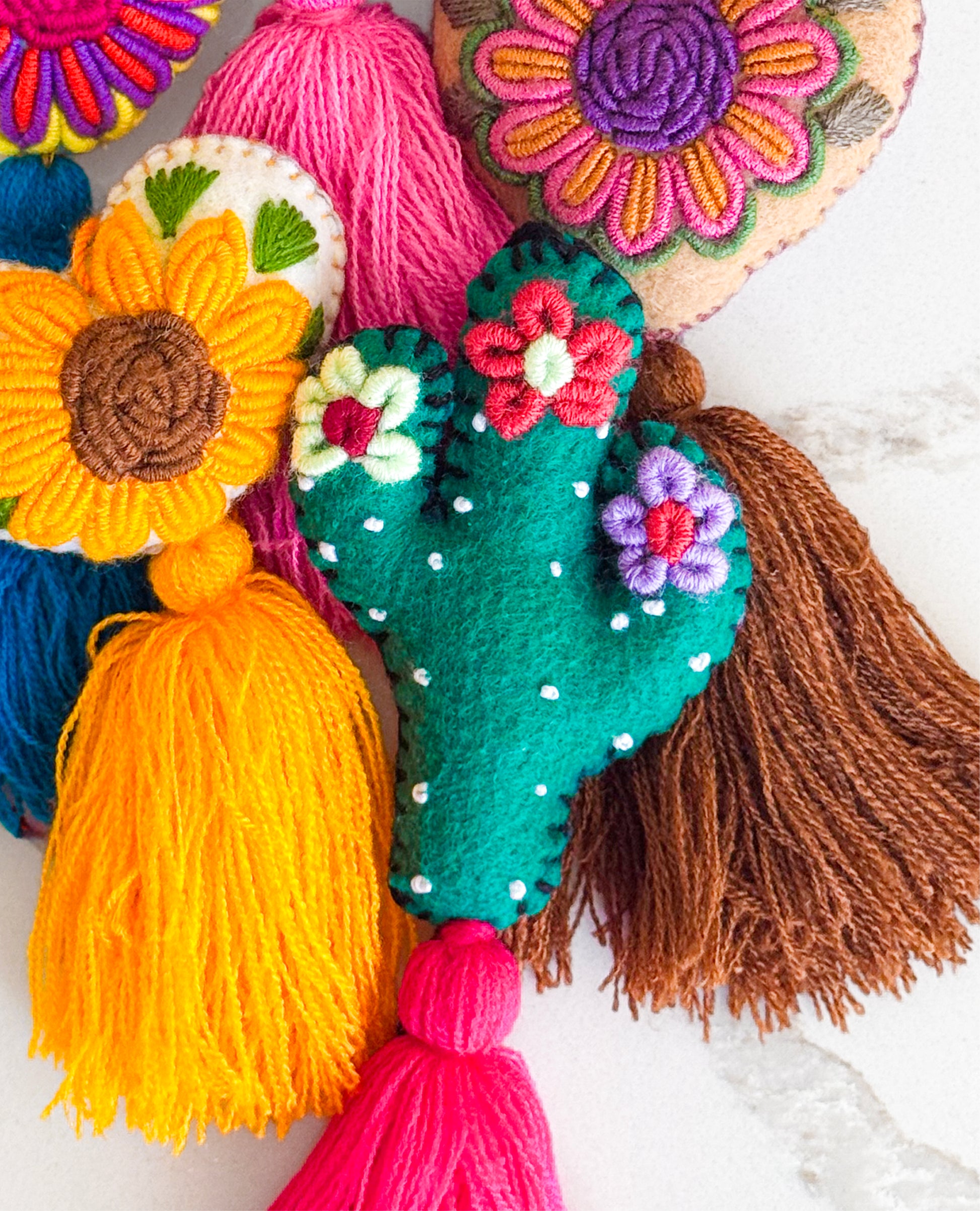Discover the intricate craftsmanship of these embroidered felt CHARMS, hand embroidered in Mexico. These unique pieces showcase traditional techniques and stunning designs. Elevate your style with a touch of Mexican culture.