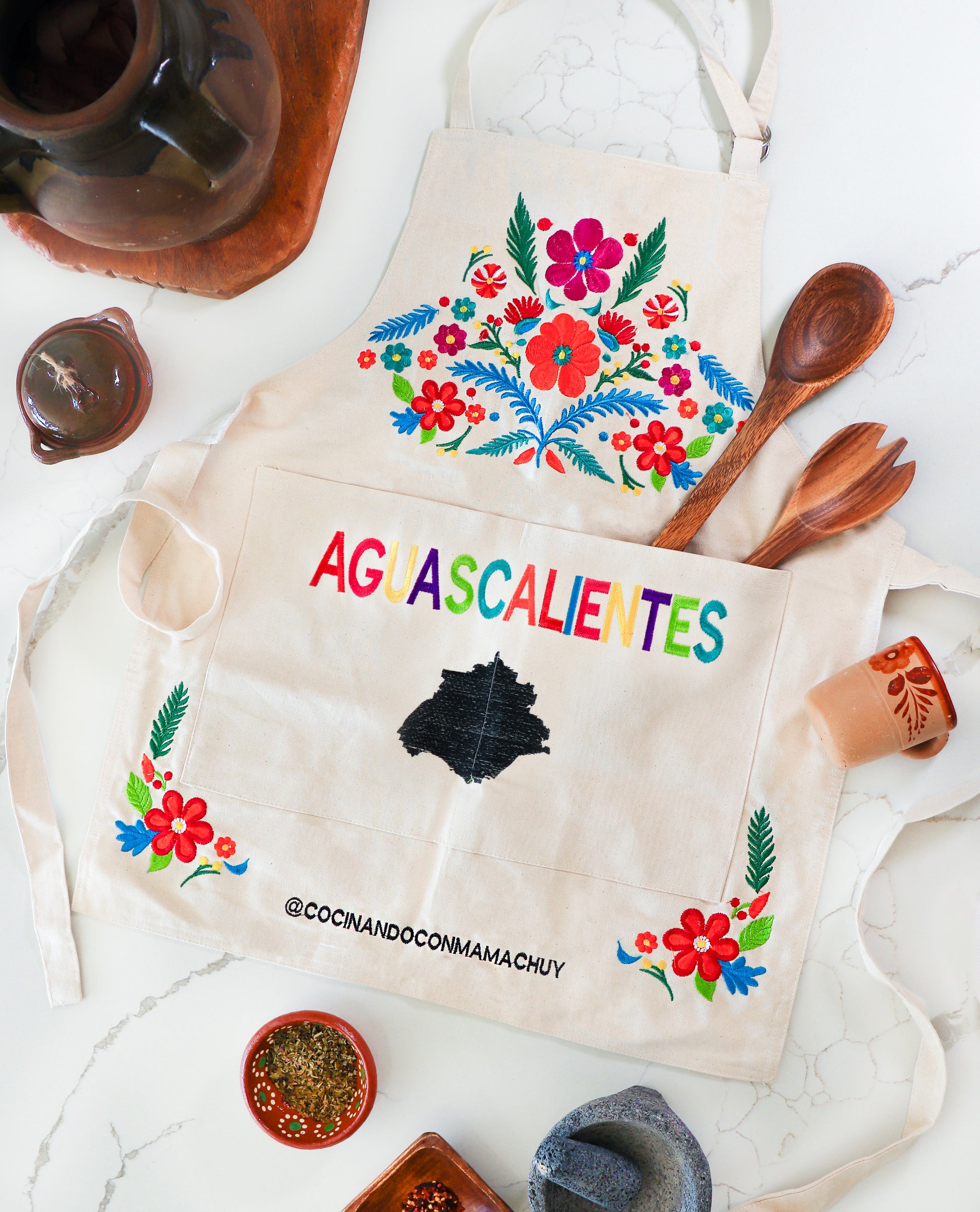 This embroidered apron is a beautifully crafted piece featuring colorful traditional patterns and vibrant stitching. It showcases the artistry and cultural heritage of Mexico, making it a unique and eye-catching accessory.