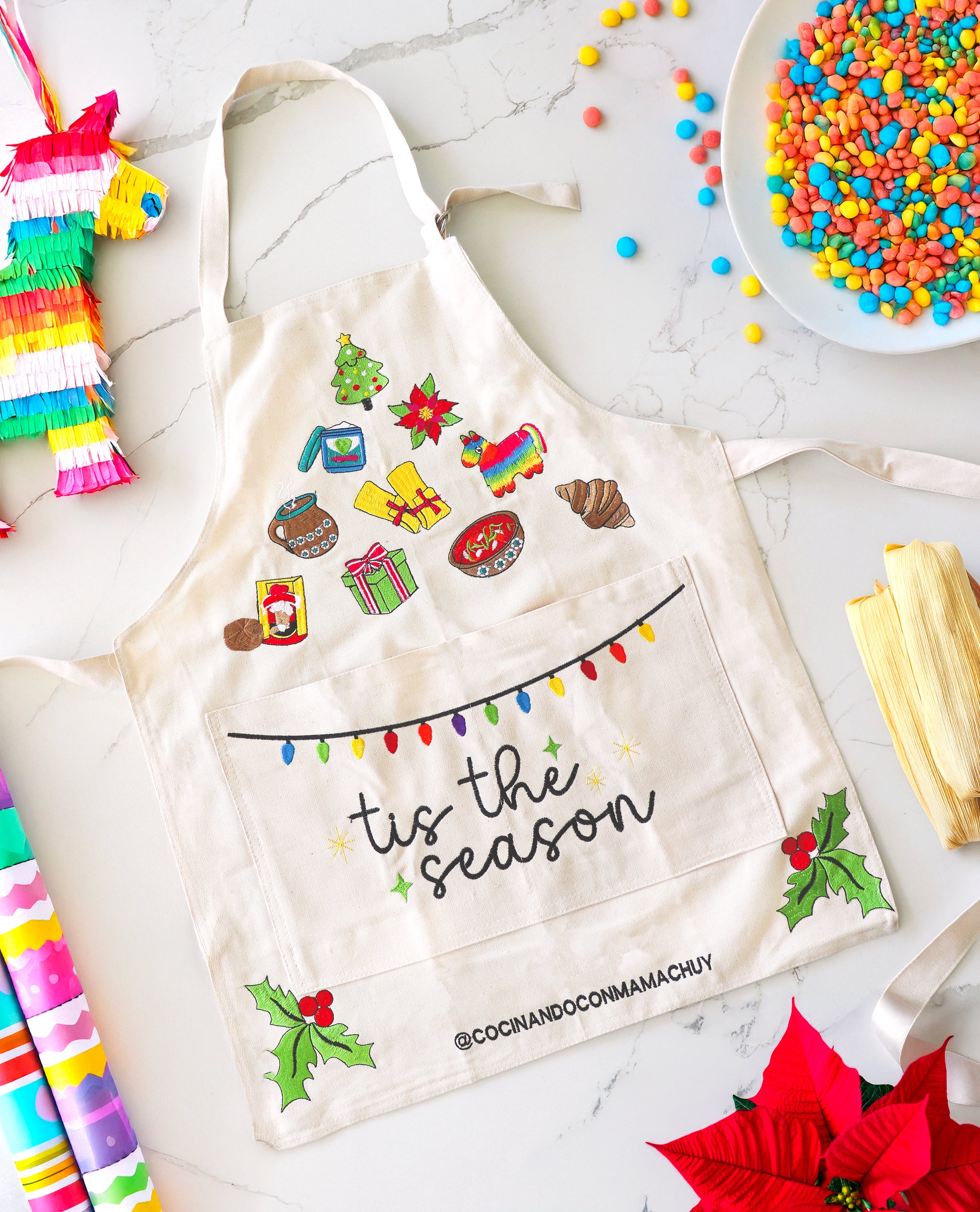 This embroidered apron is a beautifully crafted piece featuring colorful traditional patterns and vibrant stitching. It showcases the artistry and cultural heritage of Mexico, making it a unique and eye-catching accessory.
